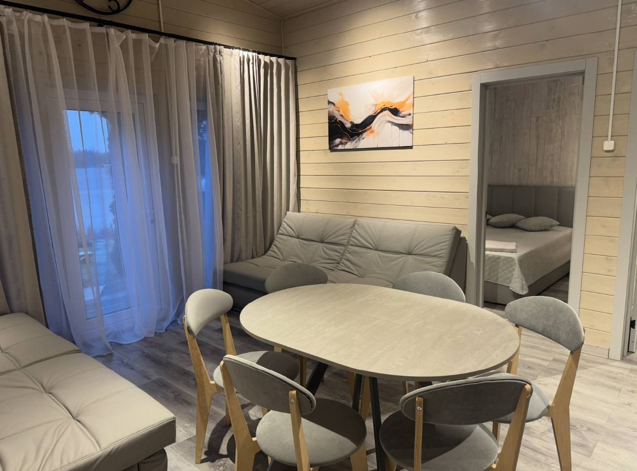✨ Комфорт и удобство: 2 спальни с ортопедическими матрасами, уютная гостиная, совмещенная с кухней и обеденной зоной, санузел с душевой кабиной, полностью оборудованная кухня (посуда, индукционная плита, холодильник, чайник, микроволновка), телевизор. Постельное белье, полотенца, одноразовые тапочки.